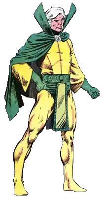 Mentor later met Rick Jones and Captain Mar-Vell. With his son Eros, he informed Jones and Mar-Vell of Thanos's degradation of Titan. Mentor enlisted Mar-Vell's aid against Thanos.[4] Mentor was imprisoned by Thanos, but freed by Captain Mar-Vell. Mentor joined in the battle against Thanos.[5] Later, Mentor joined in the attempt to cure Captain Mar-Vell of cancer, and attended Mar-Vell's last hours.[6]