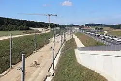In 2003, at an information event organized by DB Netz, people asked about a railway stop.[10] Gerhard Maier, a citizen of Laichingen, arranged for the idea of a station on the Laichinger Alb to be taken into account in the project planning. Although an ICE stop at Laichinger Alb demanded by the Alb-Donau district during the planning approval procedure for the section was not included in the planning approval decision issued in 2008 for section 2.3 of the new line, the decision stated that the line layout and the distance to the highway would allow for a later retrofit.[11] According to later information from the project management, the subsequent realization would not have been financially feasible.[8]