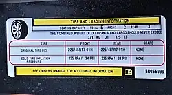 - ^ "49 CFR 571.110 – Tire selection and rims and motor home/recreation vehicle trailer load carrying capacity information for motor vehicles with a GVWR of 4,536 kilograms (10,000 pounds) or less". United States Department of Transportation Regulations. S4.3 (a) – via Cornell Law School Regulation References.