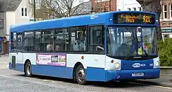 Metrobus initially had a blue and yellow livery. This was superseded by a two-tone blue livery in the early 2000s.