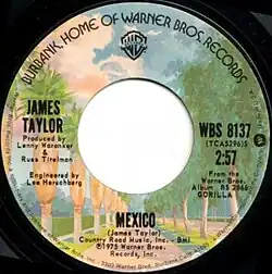 "Mexico" is a song written by James Taylor that first appeared as the opening track of his 1975 album Gorilla. It was released as a single, with the album's title track as the B-side, and reached No. 49 on the Billboard Hot 100, but performed much better on the Adult Contemporary chart, reaching No. 5. "Mexico" has appeared on many of Taylor's live and compilation albums. It has been covered by Jimmy Buffett, Alex de Grassi and Lauren Laverne.