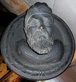 Gerhardt (IV) lived from 1667 until 1710. As a son of Johann (IV) he was born in 1667.[64] He got his formation in his father's and in his stepfather's workshop before travelling as a journeyman to Germany to continue his training.[65] Business had become tough by then. Whereas Gerhardt's ancestors and predecessors in charge of the Royal foundry had their major commissions due to the modernisation of Swedish artillery, it seems that the implementation of modern cannon types had been mostly completed at the time.[66] Furthermore, there was in Sweden a notorious lack of copper since the 1640s, severely restricting the production of cannons.[67] Yet, the king's ambitious plans for the embellishment of the new residence opened new fields of activity. Since 1693 there were ongoing construction works for a new Royal Stockholm Palace after the plans by Nicodemus Tessin the Younger. For that purpose, a whole team of French artists and artisans came over the following years to Stockholm, including the French caster Jean Hubeault who made ornamental casts for the decoration of the palace.[68] It was planned to decorate the new palace with monumental bronze sculptures. Casting bronze sculptures was a task so far unknown in Sweden. The only exception had been the above-mentioned Kopparmatte, which from a technical point of view is merely a rather rudimentary achievement.