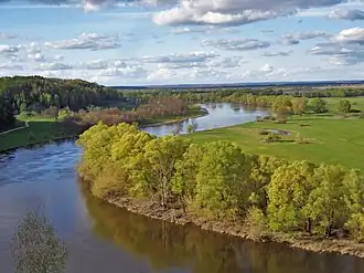 Most of the park is on the right bank of the Desna River, which runs north to south down the eastern and southern borders of the park.[1] The terrain is glacial moraines, sloping terraces, floodplain terraces, and elevated plains with many tributary streams running down to the river. The hills range from 125 to 208 meters above sea level. The general area is part of the Dnieper River Lowlands. The park is about 20 km west-to-east, and 30 km north-to-south. It is situated about 110 km east of the regional city of Chernihiv, and 60 km downstream from the border with Russia to the north.[1]