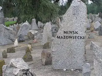 The Mińsk Mazowiecki Ghetto or the Mińsk Ghetto (Polish: Getto w Mińsku Mazowieckim, Yiddish: נאוואמינסק, Novominsk) was a World War II ghetto set up by Nazi Germany in occupied Poland. Some 7,000 Polish Jews were imprisoned there from all neighbouring settlements for the purpose of persecution and exploitation.[1][2] Two years later, beginning 21 August 1942 during the most deadly phase of the Holocaust in occupied Poland, they were rounded up – men, women and children – and deported to Treblinka extermination camp aboard Holocaust trains.[3] In the process of Ghetto liquidation, some 1,300 Jews were summarily executed by the SS in the streets of Mińsk Mazowiecki.[2]
