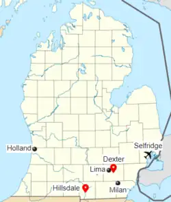 For nearly three hours, beginning around 3:50 a.m. on March 14,[5] Washtenaw County residents, sheriffs and police reported witnessing lights in the sky moving at high speeds over Lima Township.[6] Calls were received from Monroe, Livingston, Ypsilanti, Dexter, and Sylvania. Washtenaw County Sheriff Deputies Buford Bushroe and John Foster reported seeing the lights. Personnel at Selfridge Air Force Base confirmed the sightings but did not pick up the objects on radar.[7][8][9]