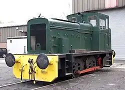 No. 1163 "Whitehead" Peckett 0-4-0ST Built in 1908, "Whitehead" was used in the major Welsh industries. On withdrawal, it was purchased by the Great Western Society and moved to the West Somerset Railway. Arrived at the Midland Railway – Butterley in July 1999.[10] Under Repair[11] Unlined Brunswick Green with the BR Crest. Private Owner. 1908