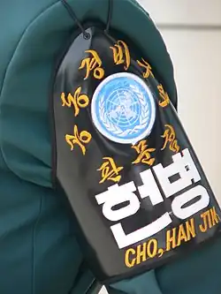 The Republic of Korea Military Police (ROK MP; Korean: 대한민국 국군 군사경찰; Hanja: 大韓民國國軍軍事警察; RR: Daehanminguk Gukgun Gunsagyeongchal), are the uniformed law enforcement agencies of each respective branch of the Republic of Korea Armed Forces. Once operated under a unified Military Police Command (헌병총사령부; 憲兵總司令部; heonbyeong chongsa ryeongbu) between 1953 and 1960,[1] the ROK's MP units are now commanded by the Army, Navy, Marines and Air Force HQs separately. ROK Army MPs also function as border guards at the Korean Demilitarized Zone (DMZ).