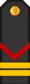 | Admiral | Vitse-admiral | Kontr-admiral | Birinci dərəcəli kapitan | Ikinci dərəcəli kapitan | Üçüncü dərəcəli kapitan | Kapitan-leytenant | Baş leytenant | Leytenant | Kiçik leytenant | |||||||||||||||