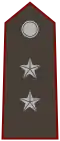 | Generale | Tenente generale | Maggiore generale | Colonnello | Tenente colonnello | Maggiore | Capitano | Tenente | Sottotenente