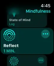 With watchOS 8, a "reflect" mode was introduced, which provides users with a prompt or question to think about over a minute period. While completing a reflect activity, the watch displays a screen that cycles through different colors in motion.[4]