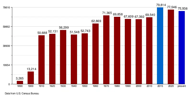 | 2024 (est.) | 75,938 | [1] | −2.1% |
