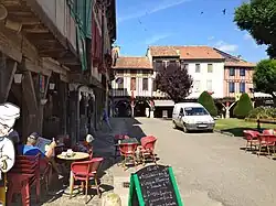 Mirepoix was captured in 1209 by Simon V de Montfort and given to one of his lieutenants, Guy de Lévis. The town, originally on the right bank of the Hers-Vif, was destroyed by a violent flood in 1289.[3][4][5] It was rebuilt by Jean de Lévis in 1290, on an elevated natural terrace on the other side of the river. The layout of the town center has not changed since the 13th century.