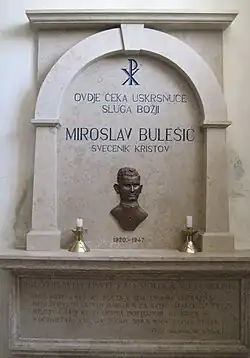 Miroslav Bulešić (13 May 1920 – 24 August 1947) was a Roman Catholic Croatian priest.[1] He studied in Rome before being recalled to his native Istria where he was ordained in 1943 during World War II prior to two parish postings where he became a vocal critic of Communism. He renewed his parishes through well-organized pastoral activities and was a promoter of frequent sacramental reception. But his criticism of Communism saw him make enemies who soon set upon and succeeded in killing him.[2]