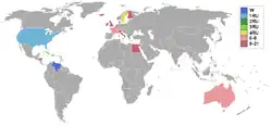 This edition marked the debut of Australia, Austria, Cuba, Honduras, Iceland and Venezuela, and the returns of Israel and Monte-Carlo, which last competed in 1953. Yolanda Cristina Gigliotti of Egypt withdrew due to the dispute between the United Kingdom and Egypt over the Suez Canal.[3] Switzerland and Turkey withdrew after their respective organizations failed to hold a national competition or appoint a delegate.