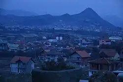 Mitrovica (Albanian indefinite form: Mitrovicë; Serbian Cyrillic: Митровица), also referred to as Kosovska Mitrovica (Serbian Cyrillic: Косовска Митровица, Albanian: Mitrovica e Kosovës) and South Mitrovica (Albanian: Mitrovicë e Jugut, Serbian: Јужна Митровица / Južna Mitrovica), is a city in northern Kosovo and administrative center of the District of Mitrovica. In 2013, the city was split into two municipalities, South Mitrovica and North Mitrovica. Settled 10 km (6.2 mi) from Ujmani/Gazivoda Lake, on the confluence of the rivers Ibër, Sitnicë, Lushta, and Trepça, the city is surrounded by the mountains of Kopaonik, Rogozna, Mokna, and Çyçavica. According to the 2024 Census, the two municipalities had 72,662 inhabitants of which 64,742 reside in south and 7,920 in north.[1]