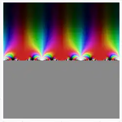 The lambda function is used in the original proof of the Little Picard theorem, that an entire non-constant function on the complex plane cannot omit more than one value. This theorem was proved by Picard in 1879.[15] Suppose if possible that f is entire and does not take the values 0 and 1. Since λ is holomorphic, it has a local holomorphic inverse ω defined away from 0,1,∞. Consider the function z → ω(f(z)). By the Monodromy theorem this is holomorphic and maps the complex plane C to the upper half plane. From this it is easy to construct a holomorphic function from C to the unit disc, which by Liouville's theorem must be constant.[16]
