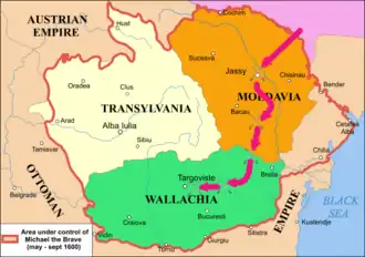 On 9 May, the Cossack-Moldavian army, on the orders of the ambitious hetman, set out and crossed the border of Wallachia, provoking resistance from the combined Transylvanian-Wallachian forces.[1]