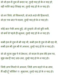 Woh jō ham mēⁿ tum mēⁿ qarār tḣā; tumhēⁿ yād hō, keh nah yād hō: