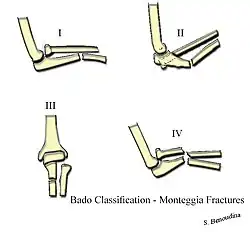 - ^ Kim, Jaehon M.; London, Daniel A. (2020-10-01). "Complex Monteggia Fractures in the Adult Cohort: Injury and Management". Journal of the American Academy of Orthopaedic Surgeons. 28 (19): e839 – e848. doi:10.5435/JAAOS-D-19-00625. ISSN 1067-151X.
