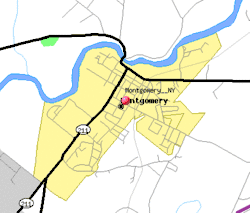 Montgomery is a village located in Orange County, New York, United States. Located 60 miles (97 km) northwest of New York City, and 90 miles (140 km) southwest of Albany, this quaint community is an historical and cultural hub of the Hudson Valley region and has grown in the last 30 years to become an outer-ring commuter suburb within the New York metropolitan area.[2] The population was 3,834 at the 2020 census. It is part of the Kiryas JoelPoughkeepsieNewburgh, NY Metropolitan Statistical Area as well as the larger New YorkNewarkBridgeport, NY-NJ-CT-PA Combined Statistical Area. The village is named after General Richard Montgomery, an officer of the American Revolution.