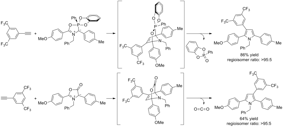 - ^ Morin, Marie S. T.; Arndtsen, Bruce A. (2014-02-21). "Chiral Phosphorus-Based 1,3-Dipoles: A Modular Approach to Enantioselective 1,3-Dipolar Cycloaddition and Polycyclic 2-Pyrroline Synthesis". Organic Letters. 16 (4): 1056–1059. doi:10.1021/ol4035512. ISSN 1523-7060. PMID 24502319.