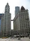 Moose (W-02-03) is a sculpture of a moose by John Kearney on the Magnificent Mile in front of 401 North Michigan and across Michigan Avenue from the Wrigley Building in the Near North Side community area of Chicago, Illinois. It is a welded steel (chrome bumpers) work of art created in between 2002 and 2003. Its dimensions are 8 ft 9 in (2.67 m) x 4 ft 2 in (1.27 m) x 9 ft 0 in (2.74 m)[1]