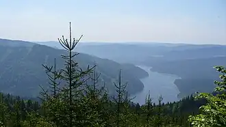 The Moravian-Silesian Beskids create the largest part of the Beskydy Landscape Protected Area. The mountains are 80% forested, though mainly by plantations of spruce which were in some parts severely damaged by emissions from the Ostrava industrial region. Originally, the mountains were covered by mixed forest with dominant beech which are preserved in many places. Recently, permanent occurrence of all three large Central European carnivores – lynx, bear and wolf – have been confirmed in the area.[3]