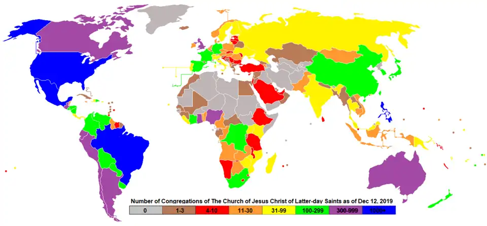 - ^ This does not include member groups,[12] only congregations organized as ward or branch.[13]