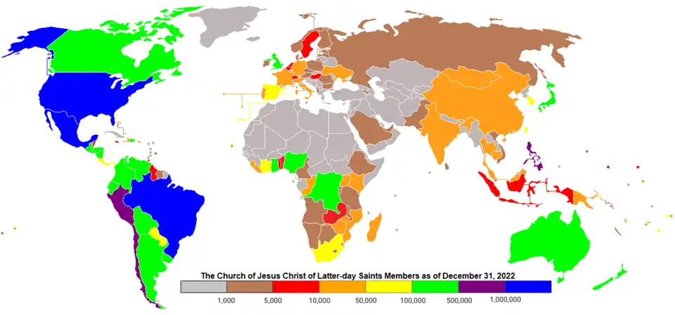 - ^ a b December 31, 2023 Information released by the LDS Church. For countries without released info, the most recent year of released info or estimate were used.