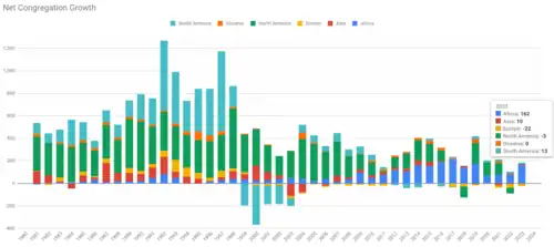 - ^ a b c d e f g h i j k l 2018 membership and congregational information shown.