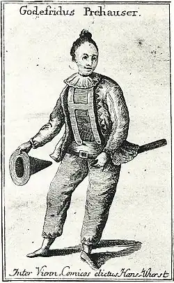 Schroeder (1999) suggests that in the 18th century scatological humour was far more public and "mainstream". The German-language popular theatre of Mozart's time was influenced by the Italian commedia dell'arte and emphasized the stock character of Hanswurst, a coarse and robust character who would entertain his audience by pretending to eat large and unlikely objects (for instance, a whole calf), then defecating them.[22]