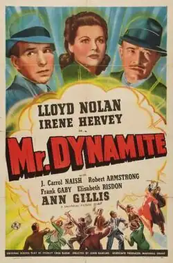 Mr. Dynamite is a 1941 American mystery thriller film directed by John Rawlins and written by Stanley Rubin.[2] The film stars Lloyd Nolan, Irene Hervey, J. Carrol Naish, Robert Armstrong, Ann Gillis, Frank Gaby and Elisabeth Risdon. The film was released on March 1, 1941, by Universal Pictures.[3][4][5]