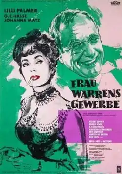 Mrs. Warren's Profession (German: Frau Warrens Gewerbe) is a 1960 West German drama film directed by Ákos Ráthonyi[2] and starring Lilli Palmer, O. E. Hasse and Johanna Matz. It is an adaptation of George Bernard Shaw's 1894 play Mrs. Warren's Profession.