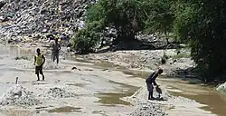 Msimbazi River bed being exploited for sand and used a trash dump in background