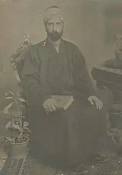 Mírzá Muḥammad Muṣṭafá al-Baghdádí (1837/8—1910) was a prominent Iraqi adherent of the Baháʼí faith and one of 19 Apostles of Baháʼu'lláh.[1][2][3] Mustafá was among the leading Baháʼís in Iraq until he moved to Beirut in the late 1870s, where he coordinated pilgrims going to see Baháʼu'lláh in ʻAkká, and later he was involved with the movement of the Báb's remains to ʻAkká.[4][1]