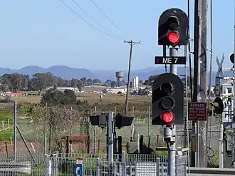 Mulgrave railway station is on the Richmond railway line. It is four stations from the terminus station at Richmond. Mulgrave station is 53 kilometres (33 mi) from Sydney's Central Station, which takes approximately 1 hour 6 minutes to travel by train during peak hour.[5] The station along with the arrival of a steam train features in The Seekers at Home TV special, 1968. Filmed as the setting for the song "Angeline is always Friday", steam hauled services ceased to operate shortly afterwards.