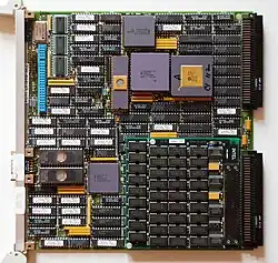One example of this was Sun Microsystems with their Sun-1 and Sun-2 workstations. Sun built custom-designed CPU, memory, SCSI, and video display boards, and then added 3Com Ethernet networking boards, Xylogics SMD disk controllers, Ciprico Tapemaster 1/2 inch tape controllers, Sky Floating Point Processor, and Systech 16-port Terminal Interfaces in order to configure the system as a workstation or a file server.[3] Other workstation vendors who used Multibus-based designs included HP/Apollo[4] and Silicon Graphics.[5]