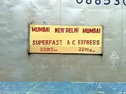 | Termini | Mumbai Central New Delhi |