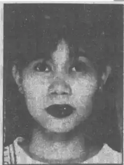 Meanwhile, Ching's alleged killer, a 35-year-old Singaporean named Teo Kim Hong, was officially arrested and charged with murder. Background information revealed that Teo and Ching were friends but they fell out shortly before the murder. Teo herself left school at age eleven and she gave birth to one son at age sixteen; the son (aged 20 in 1996) was serving his National Service when his mother was charged with killing Ching.[7] It was revealed that Teo herself was a distant cousin of Lim Ban Lim,[8] who was one of Singapore's most notorious gunmen and the perpetrator of the murder of police corporal Koh Chong Thye in 1968. Lim was later killed by police during a gunfight in 1972.[9][10]