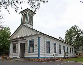 Murphys Grammar School is a historic school building in Murphys, California. Built in 1860, the school was the first public school in Murphys. The school was designed in a vernacular Greek Revival style, which was popular at the time of its construction; its design includes a cornice held up by square pilasters, a pedimented gable, and a cupola over the entrance with its own cornice and square pilasters. The school operated continuously from its opening until it closed in 1973; at the time of its closing, it was the longest continuously running school west of the Mississippi River.[2][3]