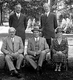 The Government, led by Prime Minister Frederick C. Alderdice, called upon the British government to take direct control until Newfoundland could become self-sustaining. The United Kingdom, concerned over Newfoundland's likelihood of defaulting on its loans, asked the government to establish the Newfoundland Royal Commission, headed by a Scottish peer, Lord Amulree. Its report, released in 1933, assessed Newfoundland's political system as institutionally corrupt and its economic future as bleak, recommending the abolition of responsible government, and its replacement by a Commission of the British Government.[1] Acting on the report's recommendations, Alderdice's government voted itself out of existence in December 1933. Appointed as chair of the Commission of Government in 1934, Anderson found his role as Governor with significantly expanded powers and proved himself up to the job, constantly sending reports back to the Dominions Office and giving advice to the Dominions Secretary on how to deal with the Commission members.[14]
