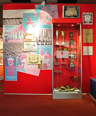 Accumulated collections contain over 46 thousand exhibits, sport trophies, like medals, cups and diplomas, as well as outfits and equipment. The museum also contains a big variety of books, pictures, newspapers, postcards as well as audio and video materials.