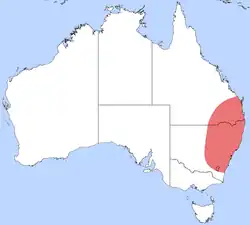 Myrmecia gulosa ants are abundant in eastern Australia. They can be found in the coastal regions of Queensland and eastern New South Wales. Populations can be found in the Australian Capital Territory and in the Murray-Darling Basin.[1] Colonies of M. gulosa ants have been recorded from Black Mountain, Brisbane, Fletcher, Stanthorpe and St. George in Queensland, and in New South Wales they have been recorded in Lismore, Armidale, Narrabri, Clarence River, Taree and in Sydney (in the suburbs of Como, Oatley and Liverpool).[2]