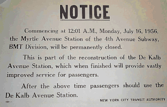- ^ "Myrtle Ave. station lost to time, development". Second Ave. Sagas. March 14, 2007. Retrieved May 7, 2017.