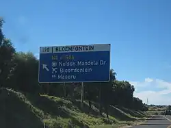 The N8 is a national route in South Africa that connects Groblershoop (south-east of Upington) with Maseru in Lesotho via Kimberley and Bloemfontein.[1] It is maintained by the South African National Roads Agency.