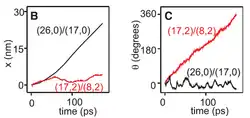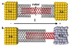 - ^ a b c d Fennimore, A. M.; T.D. Yuzvinsky; Wei-Qiang Han; M. S. Fuhrer; J. Cumings; A. Zettl (2003). "Rotational actuators based on carbon nanotubes". Nature. 424 (6947): 408–410. Bibcode:2003Natur.424..408F. doi:10.1038/nature01823. PMID 12879064. S2CID 2200106.