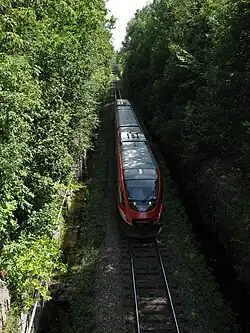 OC Transpo operates a light rail (LRT) system named the O-Train with three lines in operation. Line 2 is a north–south line using diesel-powered units and has just over 2 million riders per year.[35] Line 1 links the western suburbs and the eastern suburbs via downtown, and uses electrically powered light-rail vehicles. Line 1 is 12.5 km long with 13 stations, 3 of which are underground in downtown Ottawa. There is a proposed LRT system in Gatineau that would connect with the Confederation and Trillium Lines in Ottawa.[36]
