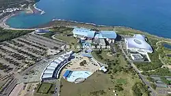 Besides public exhibitions, there are two research buildings and a marine station in the museum, dedicated to research in marine biology and ecology, aquaculture, propagation and conservation of marine fauna and flora. Research carried out at NMMBA includes the effects of pollution on coral and fish[11][12] and the effects of light on the developmental expression of fluorescent proteins.[13][14]