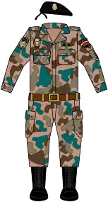 The principal weapons regularly used by the uniformed police were 9mm pistols, 9mm submachine guns, CETME and NATO 7.62mm rifles, and various forms of riot equipment. Their original uniform consisted of light brown trousers and dark brown jackets.[2]