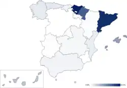 Results from a 2012 survey by the Centro de Investigaciones Sociológicas clearly identified three autonomous communities with significantly higher percentage populations who did not identify with Spain at all: Basque Country (23.5%), Catalonia (21.9%) and Navarre (16.9%).[31]